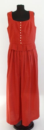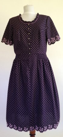 Dirndl din panza de bumbac. Se inchide in fata cu nasturi din sidef.