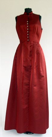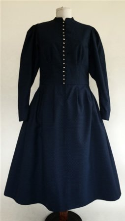 Dirndl din material tesut (aspect asemanator taftalei). Se inchide in fata cu nasturi.