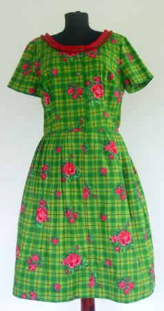 Rochie din panza de bumbac. Se inchide in fata cu nasturi din metal.