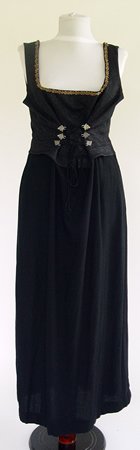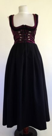 Dirndl din stofa de lana. Corsajul se inchide in fata cu nasturi din metal.