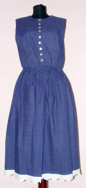 Dirndl din panza de bumbac. Se inchide in fata cu nasturi.