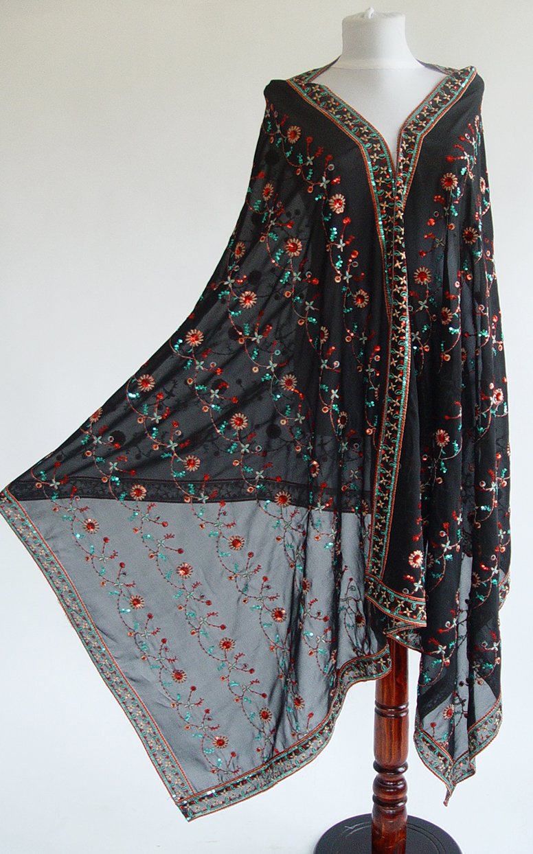 Dupatta din voal decorata cu broderii realizate din fir de matase si paiete.